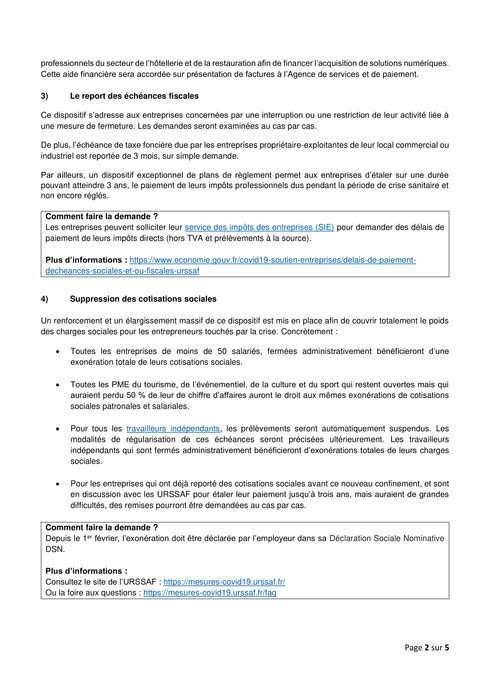 De plus, pour que chacun puisse bénéficier des aides mises en place, il me semblait essentiel de vous adresser une synthèse des mesures de soutien dont vous pouvez bénéficier. En plus du prolongement des aides existantes, nous allons renforcer les aides pour toutes les entreprises fermées administrativement, quelle que soit leur taille.