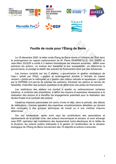 Cette feuille de route présente des actions concrètes, issues d’un travail que nous avons impulsé avec les parlementaires du pourtour de l’étang. Un calendrier défini après plusieurs mois de concertation avec les associations, les élus, les services de l’État et les acteurs économiques. Des engagements, de l’État, d’EDF et des collectivités locales.